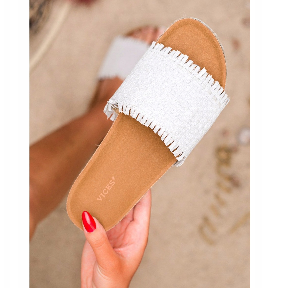 Les tongs VICES à franges blanches sont le choix parfait pour les femmes qui apprécient le style et le confort au quotidien. Ces chaussures à enfiler originales se caractérisent par un intérieur confortable en liège qui s'adapte parfaitement à la forme du pied, assurant une sensation de légèreté et de confort lors de la marche.