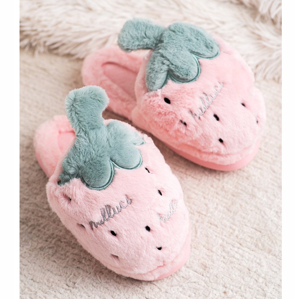 Ressentez la joie et le confort offerts par les chaussons Bona avec une application fraise - parfaits pour les moments de détente quotidiens à la maison !