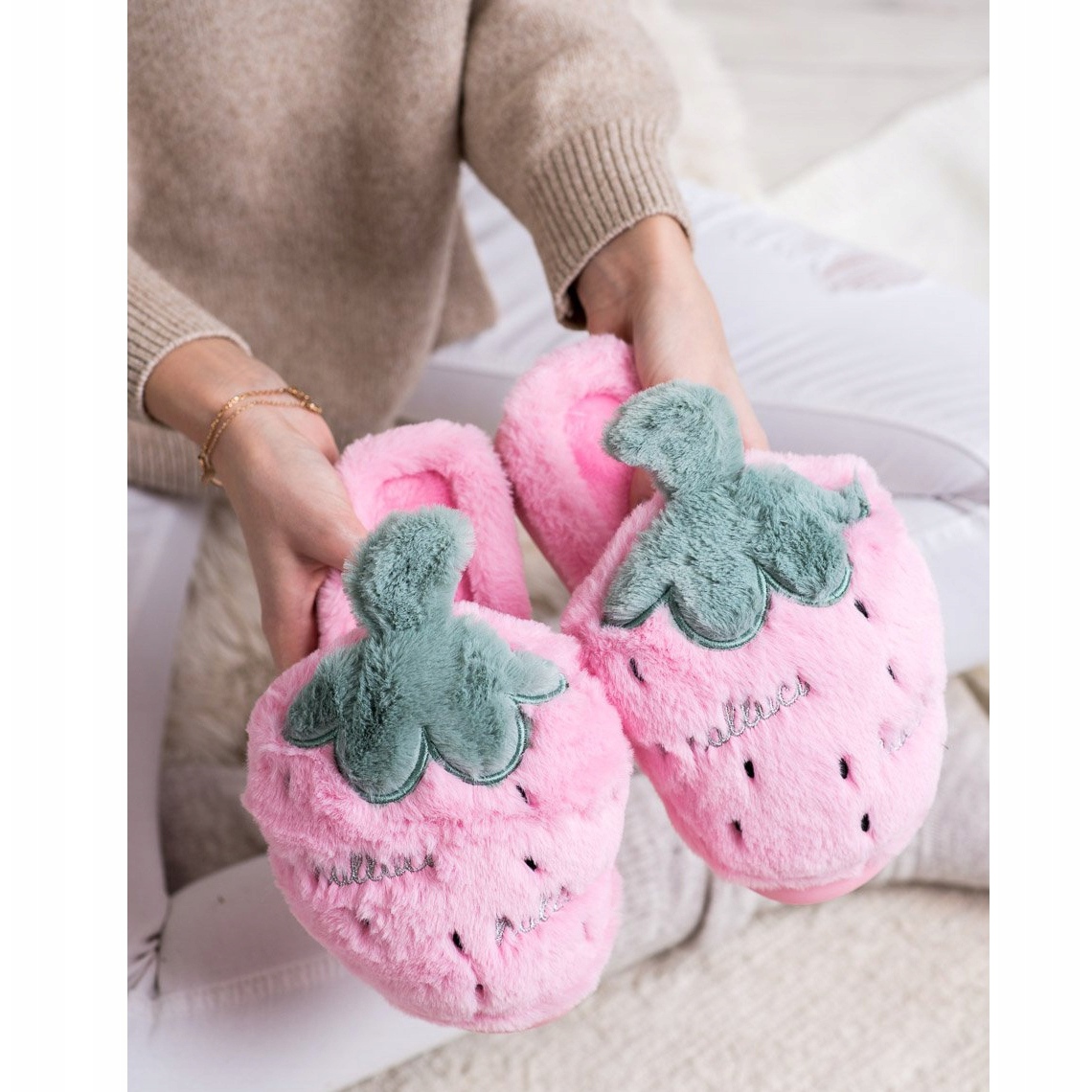 Détails: Bona Pantoufles à la fraise rose vert