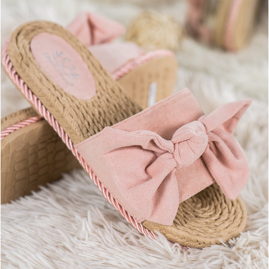 Small Swan Small Swan Pantoufles À La Mode Avec Un Noeud rose