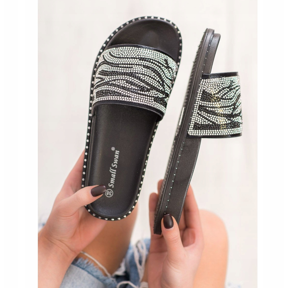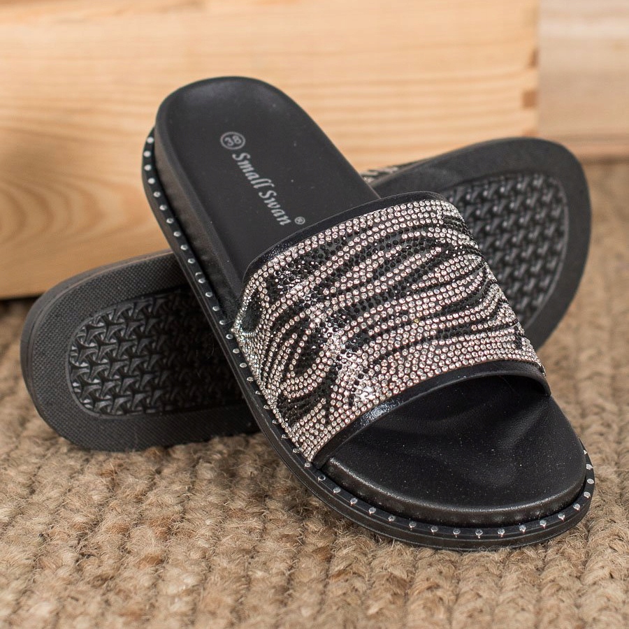 Détails: SHELOVET Pantoufles à la mode avec zircone cubique le noir gris