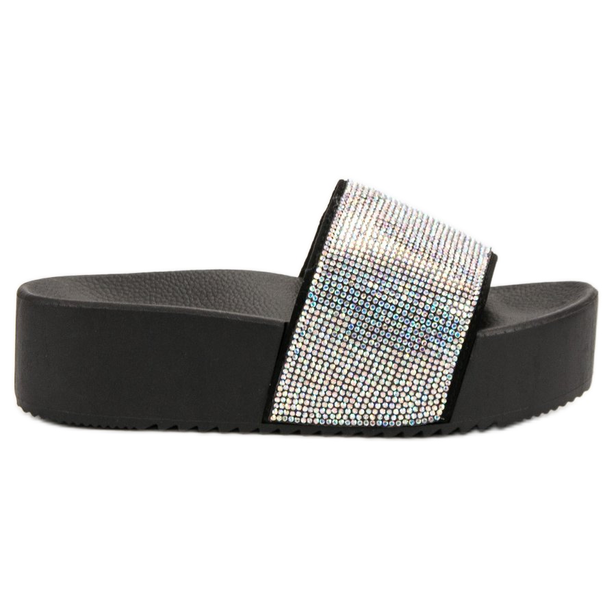 Découvrez des tongs à plateforme uniques de la marque Marquiz, qui seront un élément indispensable de votre garde-robe estivale. Ces tongs pour femmes noires et grises à la mode sont la combinaison parfaite de style et de confort, qui attireront certainement l'attention avec leur finition élégante ornée de cristaux brillants.