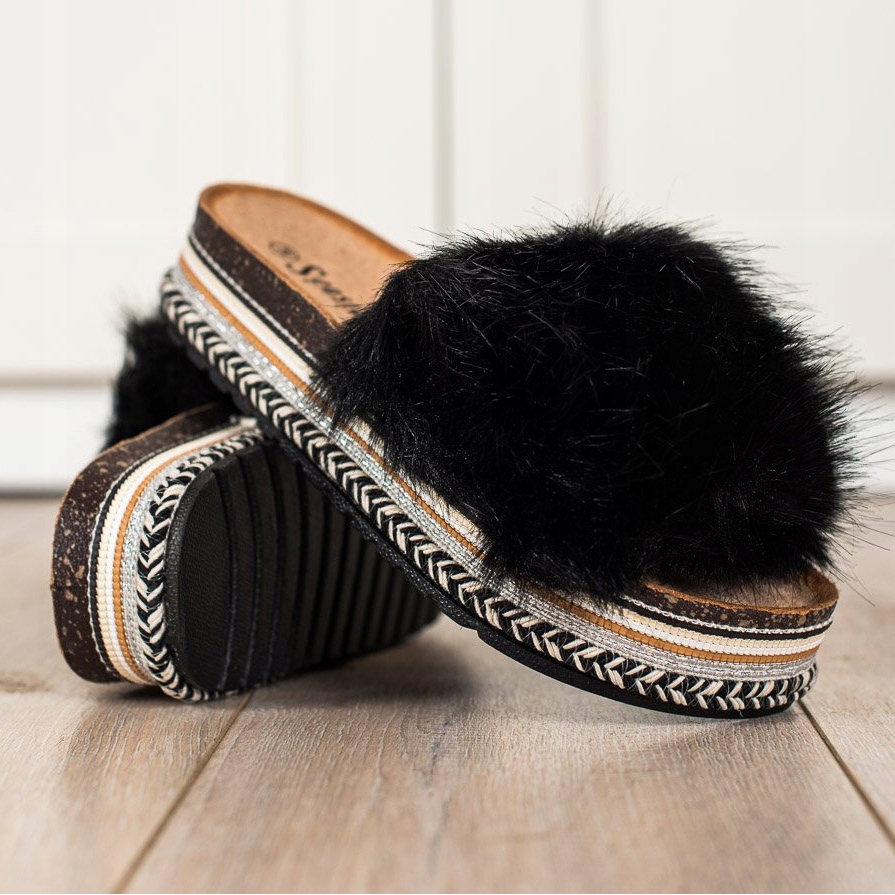 Détails: Seastar Pantoufles à la mode sur une plate-forme décorative le noir