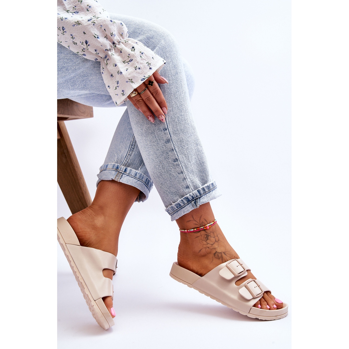 La semelle intérieure en éco-cuir augmente en outre le confort d'utilisation, assurant une marche douce et confortable. La semelle en plastique est durable et offre une adhérence adéquate, rendant chaque pas sûr et stable. Un avantage supplémentaire est une petite plate-forme d'une hauteur de 2,5 cm, qui ajoute un look classique, mais assure également un confort de marche.