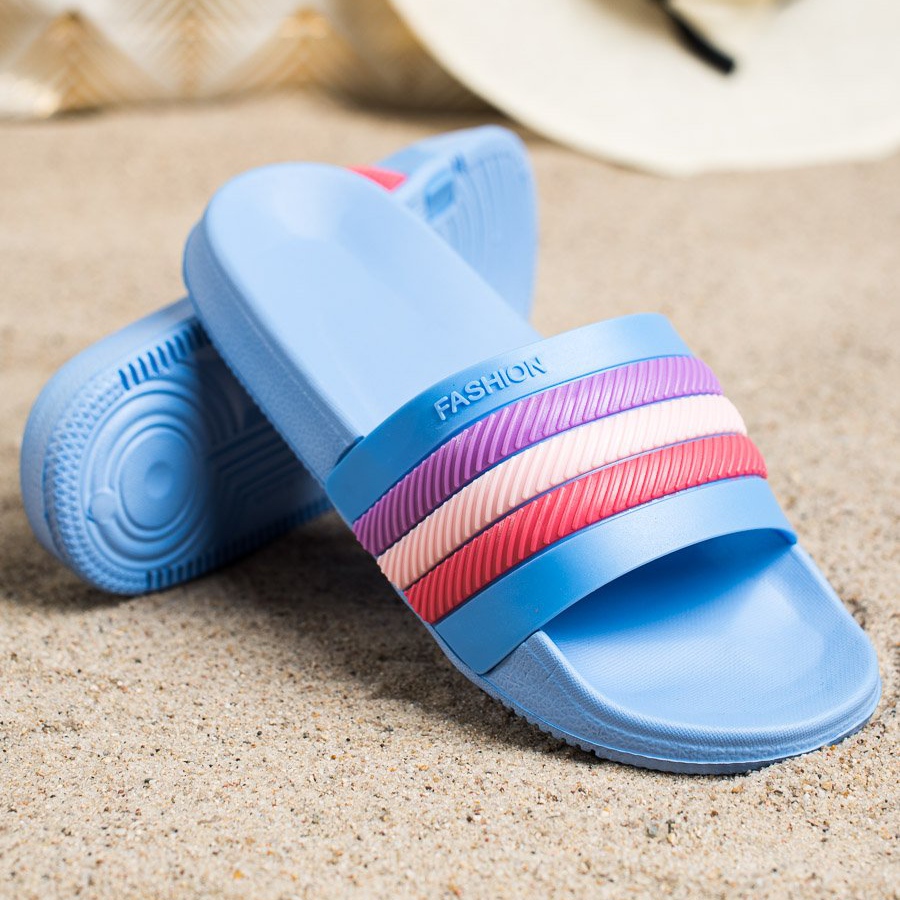 Détails: Bona Pantoufles À Rayures Colorées bleu