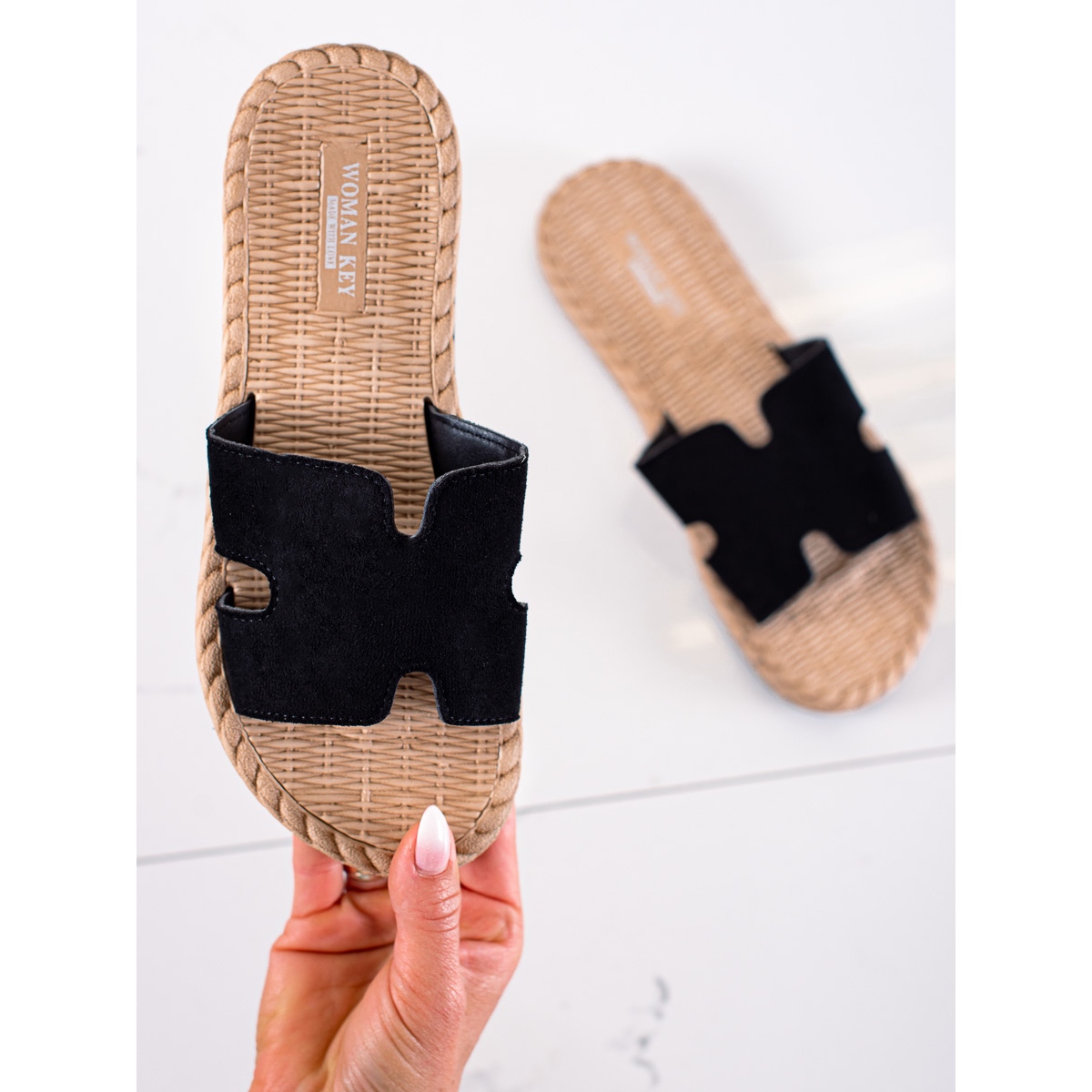 Le matériau extérieur en simili daim de haute qualité et en cuir écologique ajoute de l'élégance et de la classe, tout en étant respectueux de l'environnement. La semelle intérieure en tissu garantit douceur et confort de port, et le profil bas de la semelle (2 cm) rend les tongs extrêmement confortables.