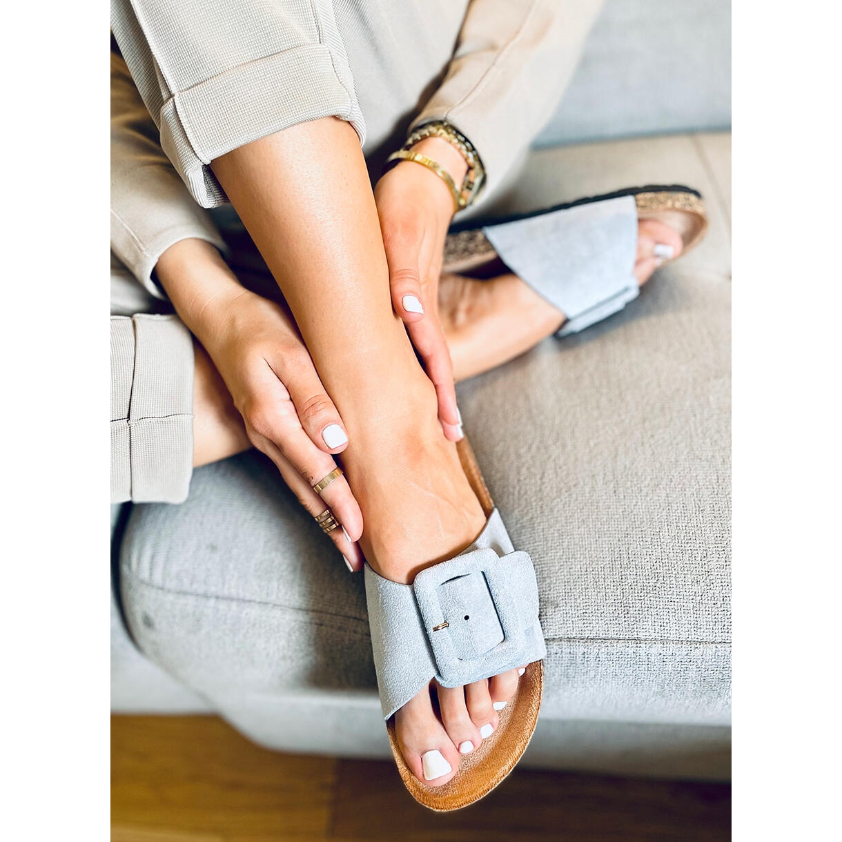 Les tongs Priya Blue avec une semelle en liège sont le choix parfait pour les femmes qui apprécient le confort et le style. Ces tongs en daim d'une belle couleur bleue correspondent parfaitement au caractère décontracté du style de tous les jours. Une large ceinture avec une boucle réglable permet un ajustement parfait au pied, et la semelle intérieure profilée garantit le confort même lors d'une utilisation à long terme.