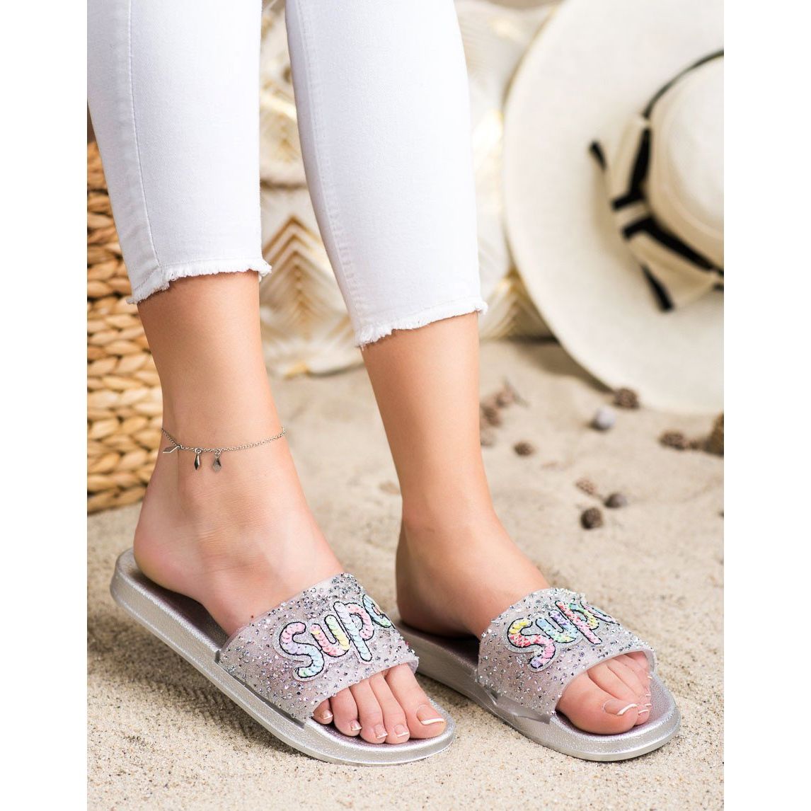 SHELOVET SHELOVET Pantoufles à super paillettes incolore argent
