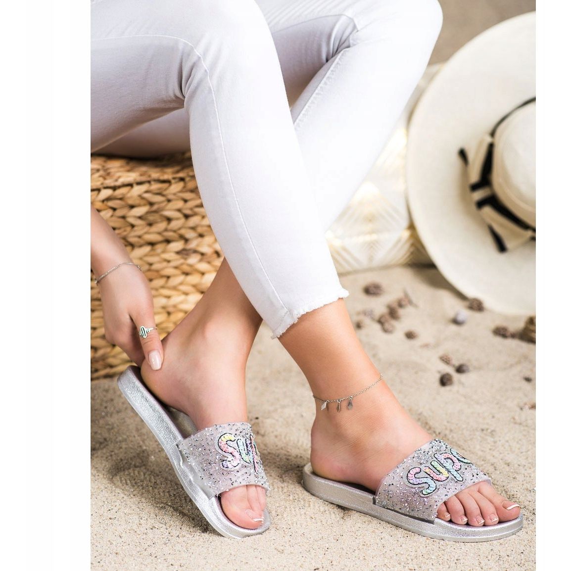 Découvrez le dernier modèle de tongs SHELOVET qui s'adapte parfaitement aux tendances printemps-été ! Les tongs à paillettes argentées sont un choix parfait pour les femmes qui souhaitent allier confort et look tendance. Grâce à leur design slip-on et à leur talon ouvert, ces tongs assurent un enfilage facile et un ajustement parfait au pied.