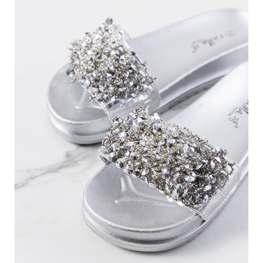 Détails: Pantoufles argentées sur la plate-forme Marthas