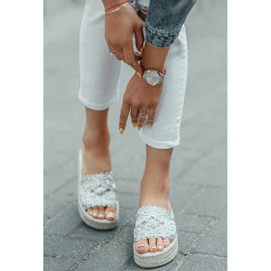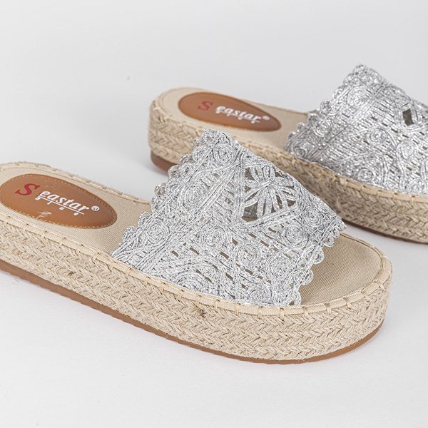 Détails: Pantoufles argentées sur la plateforme Sudden Draft