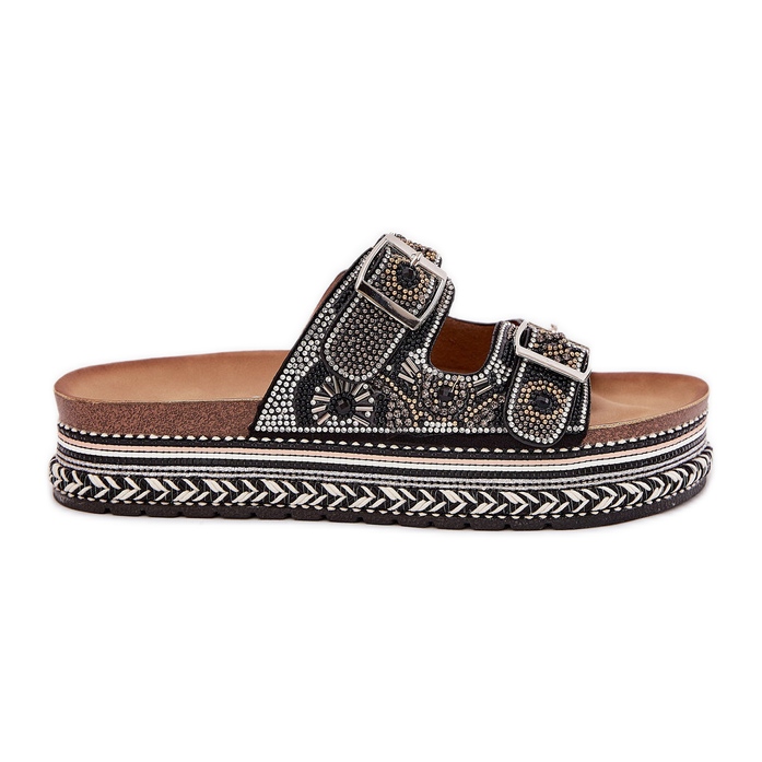 Pantoufles avec décoration et boucles sur la plate-forme noire
