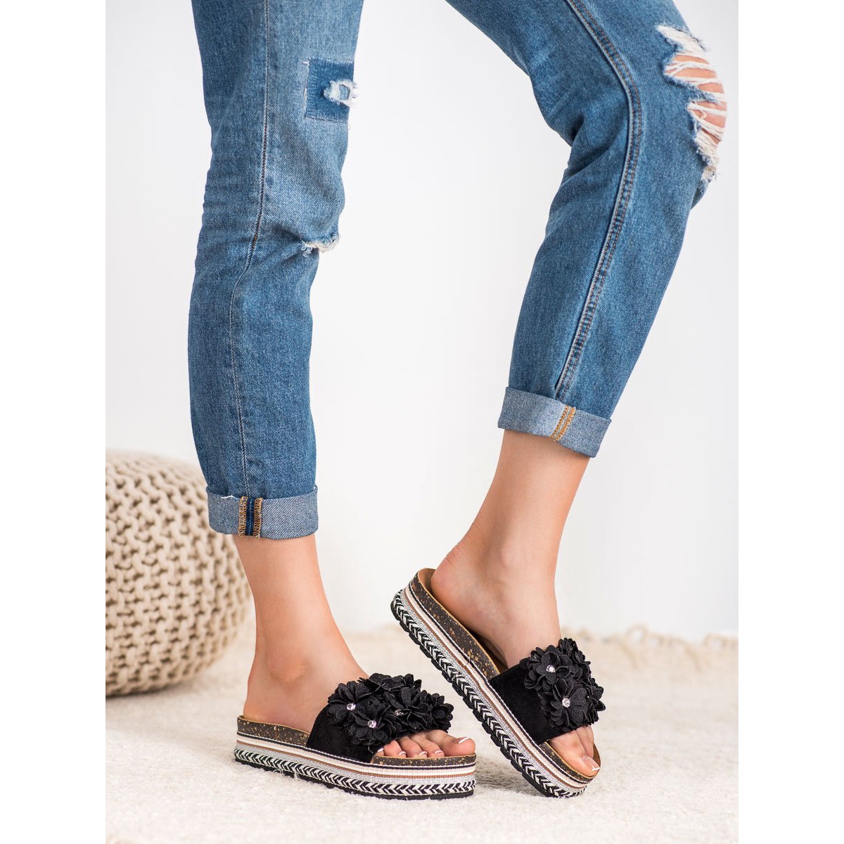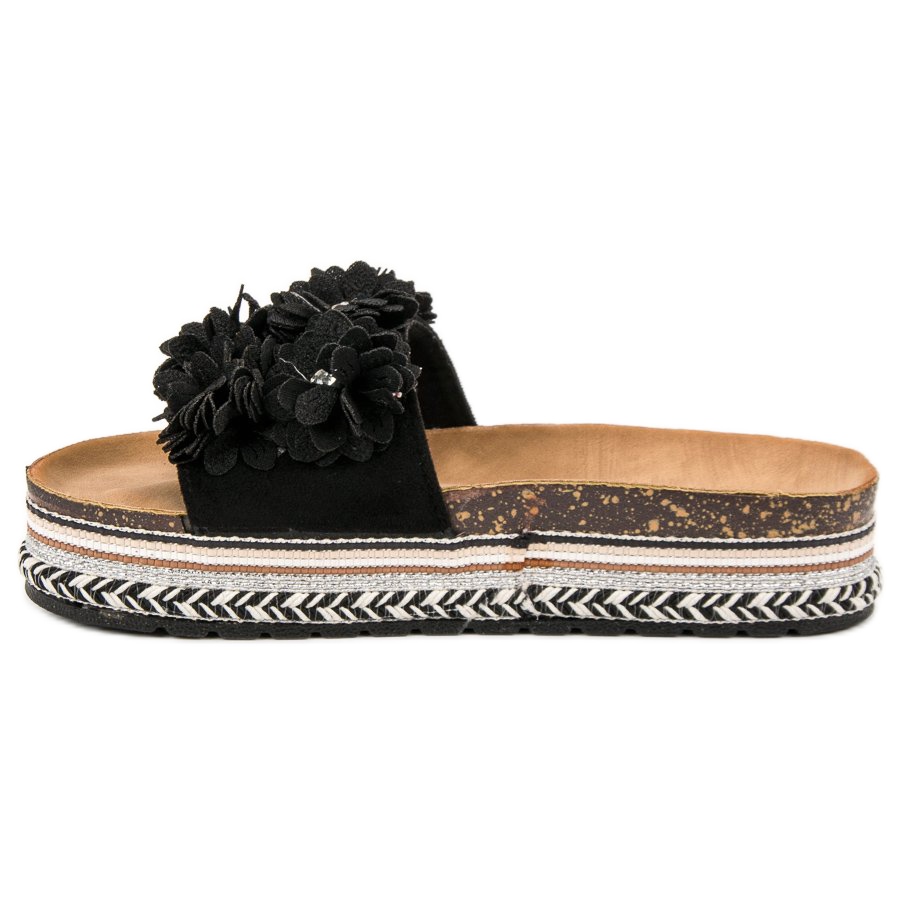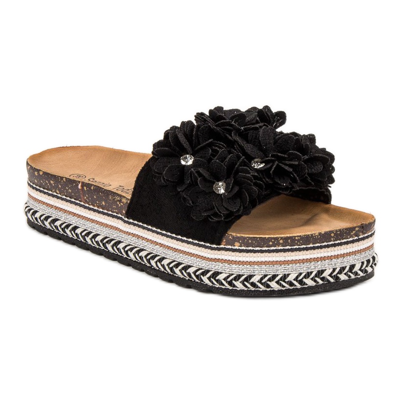 Détails: Sergio Todzi Pantoufles Avec Des Fleurs le noir