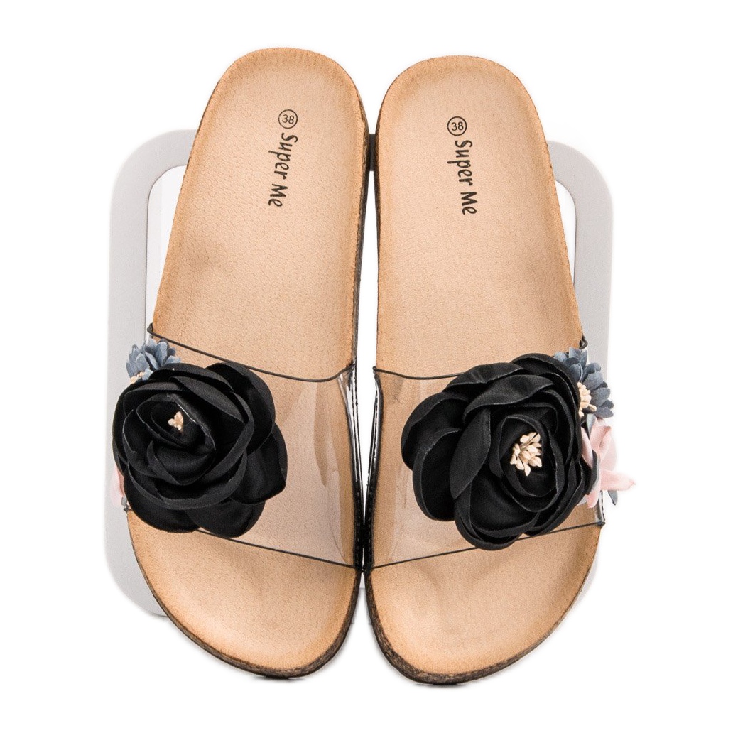Détails: Super Me Pantoufles Avec Des Fleurs noir multicolore