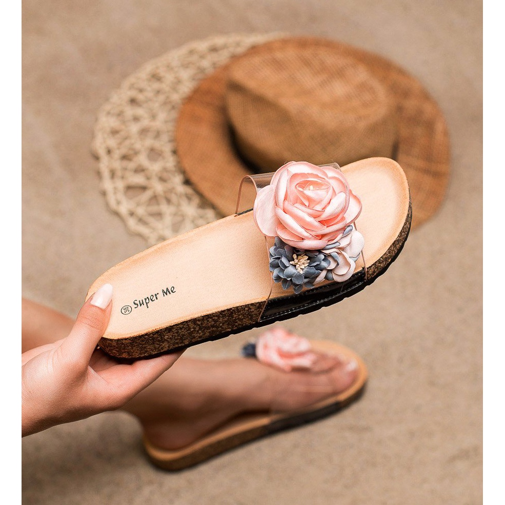 Super Me Super Me Pantoufles Avec Des Fleurs rose