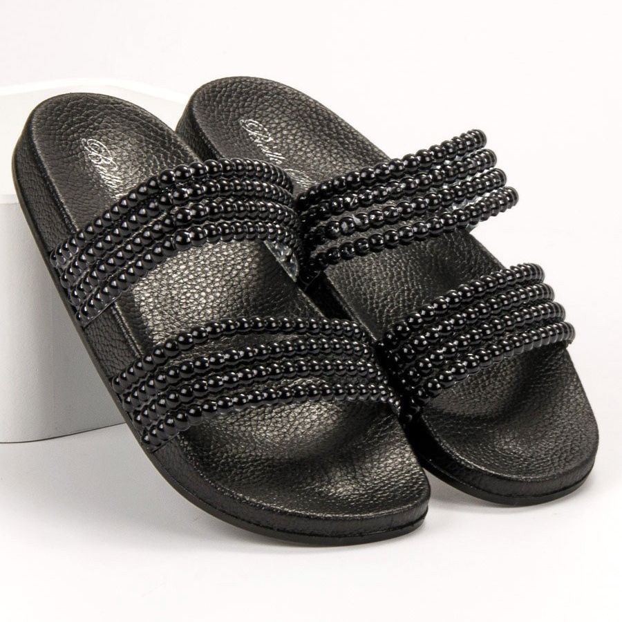Bello Star Pantoufles Avec Des Perles noir
