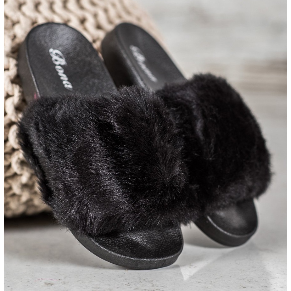 Les tongs noires Bona avec fourrure sont des chaussures uniques qui allient style et confort, parfaites pour les journées chaudes. Leur couleur noire minimaliste les rend parfaitement assortis à différents styles, du quotidien au plus décontracté.
