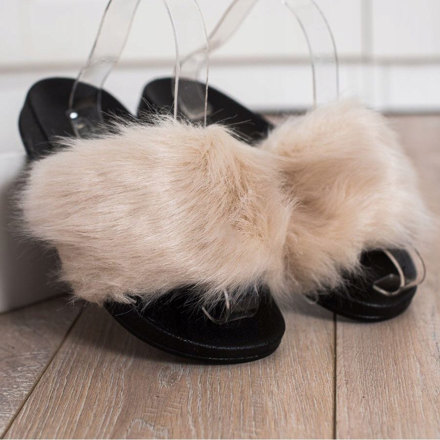 **Tongs Evento avec fourrure beige – Choix parfait pour le printemps et l'été !**