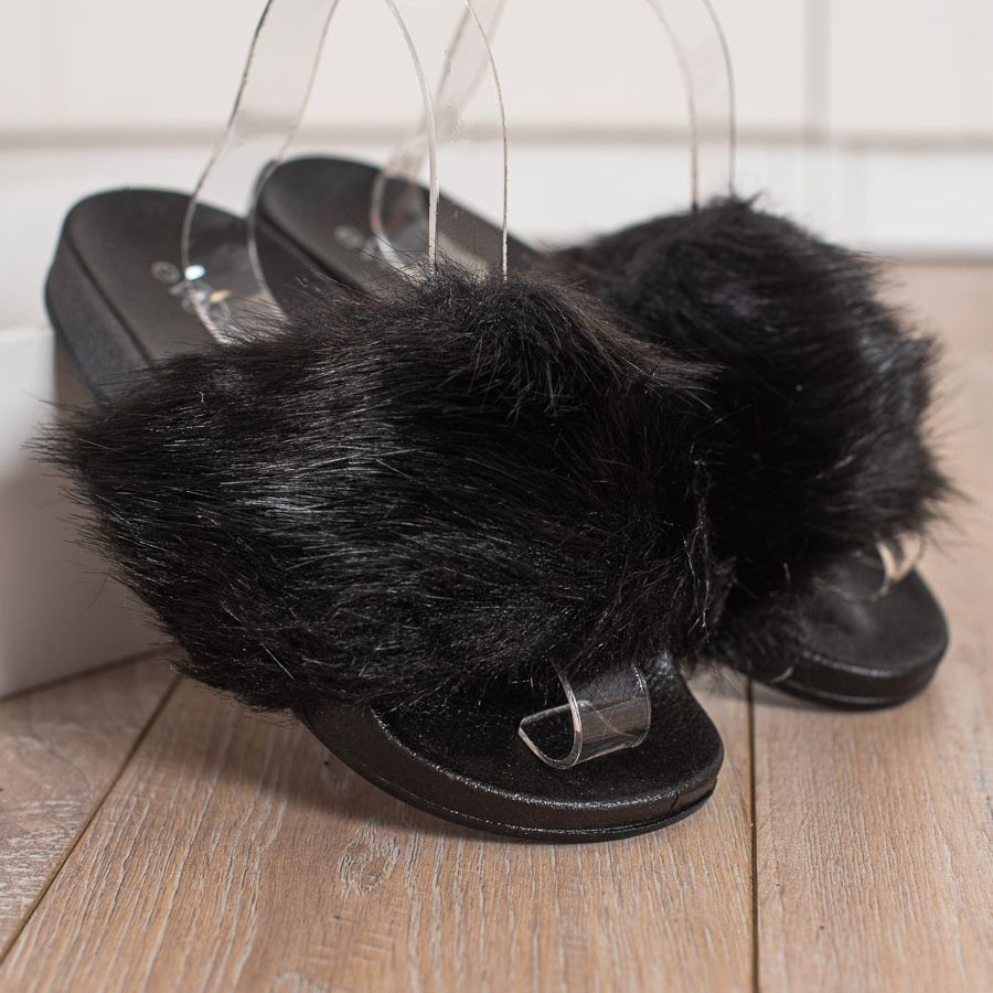 N'attendez pas ! Choisissez les tongs Evento noires avec fourrure et sentez-vous élégante et confortable au quotidien !