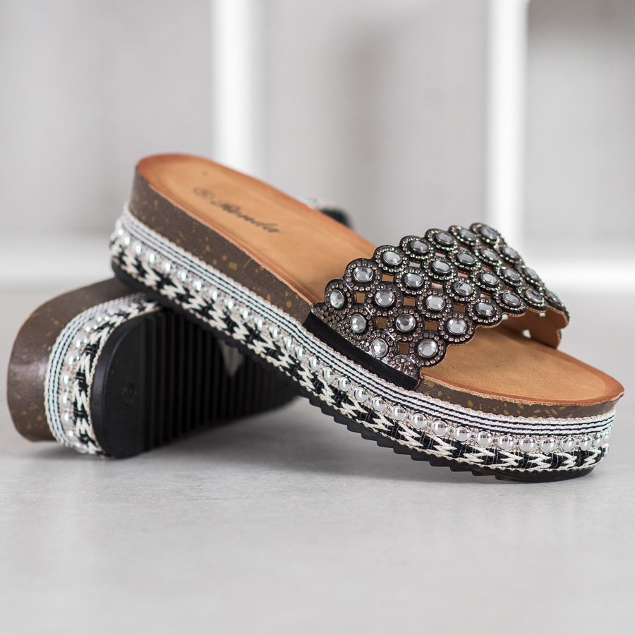Détails: Renda Pantoufles Avec Ornements Sur La Plateforme le noir