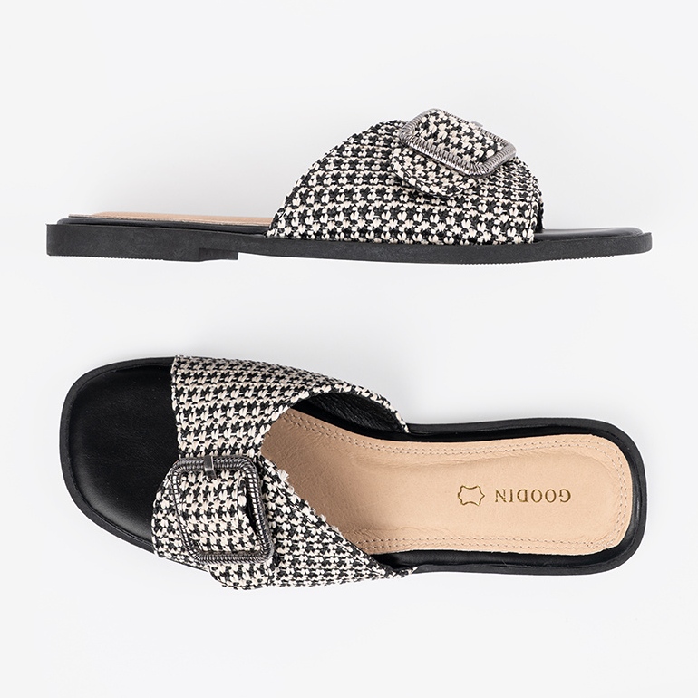 Goodin Goodin Pantoufles avec une calandre noire et blanche avec une boucle