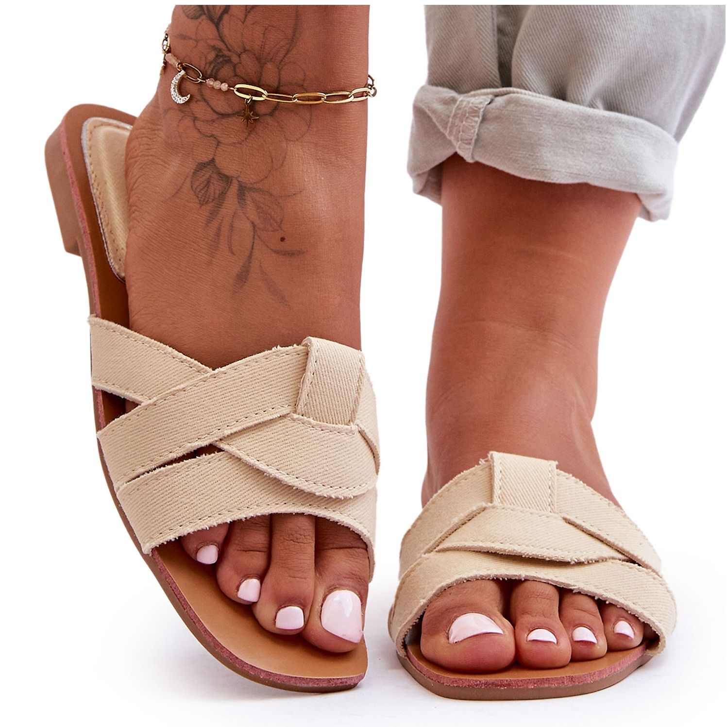 Classic pour chaque temps - des pantoufles féminines légères, aérées et extrêmement confortables pour femmes dans une nuance universelle de beige. Un tissu doux supérieur et une semelle intérieure confortable qui relie le matériau avec le matériau assure le confort même les jours chauds, et la seme en caoutchouc non glissante donne une certaine étape sur diverses surfaces. Les rayures élégantes entrelacées ajoutent de la grâce au modèle, grâce auxquelles les volets sont parfaits pour tous les jours et pendant les sorties estivales.