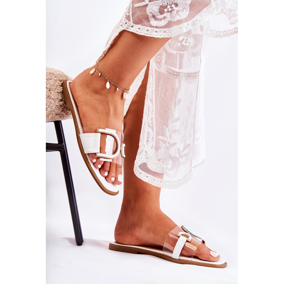 Les tongs sont soigneusement fabriquées en plastique transparent de haute qualité et en cuir écologique, ce qui les rend à la fois durables et agréables à porter. L'élément décoratif sur le devant ajoute de l'élégance et le bout carré ouvert donne à vos pieds une totale liberté.