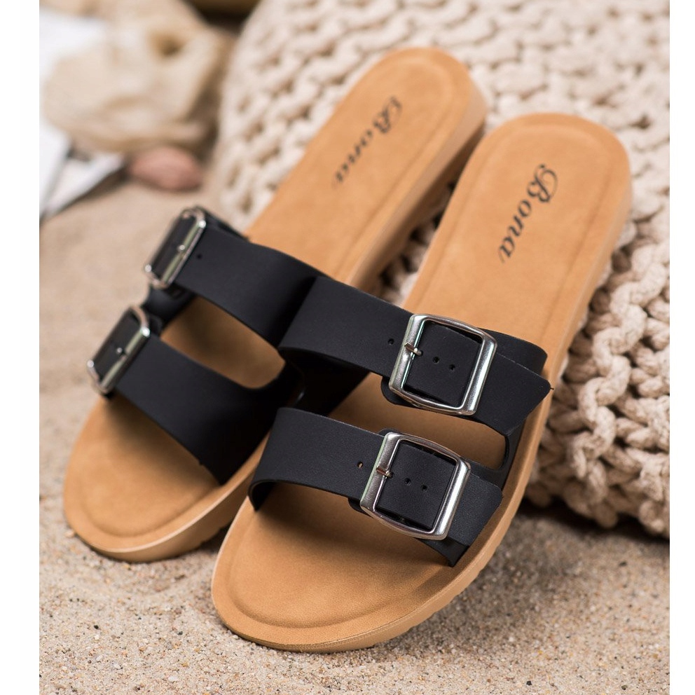 Bona Pantoufles Classiques Avec Boucle noir