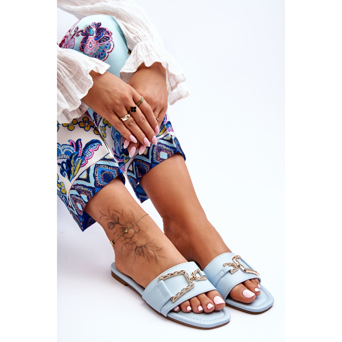 Inna marka Pantoufles classiques bleues à ornements impressionnants pour femmes