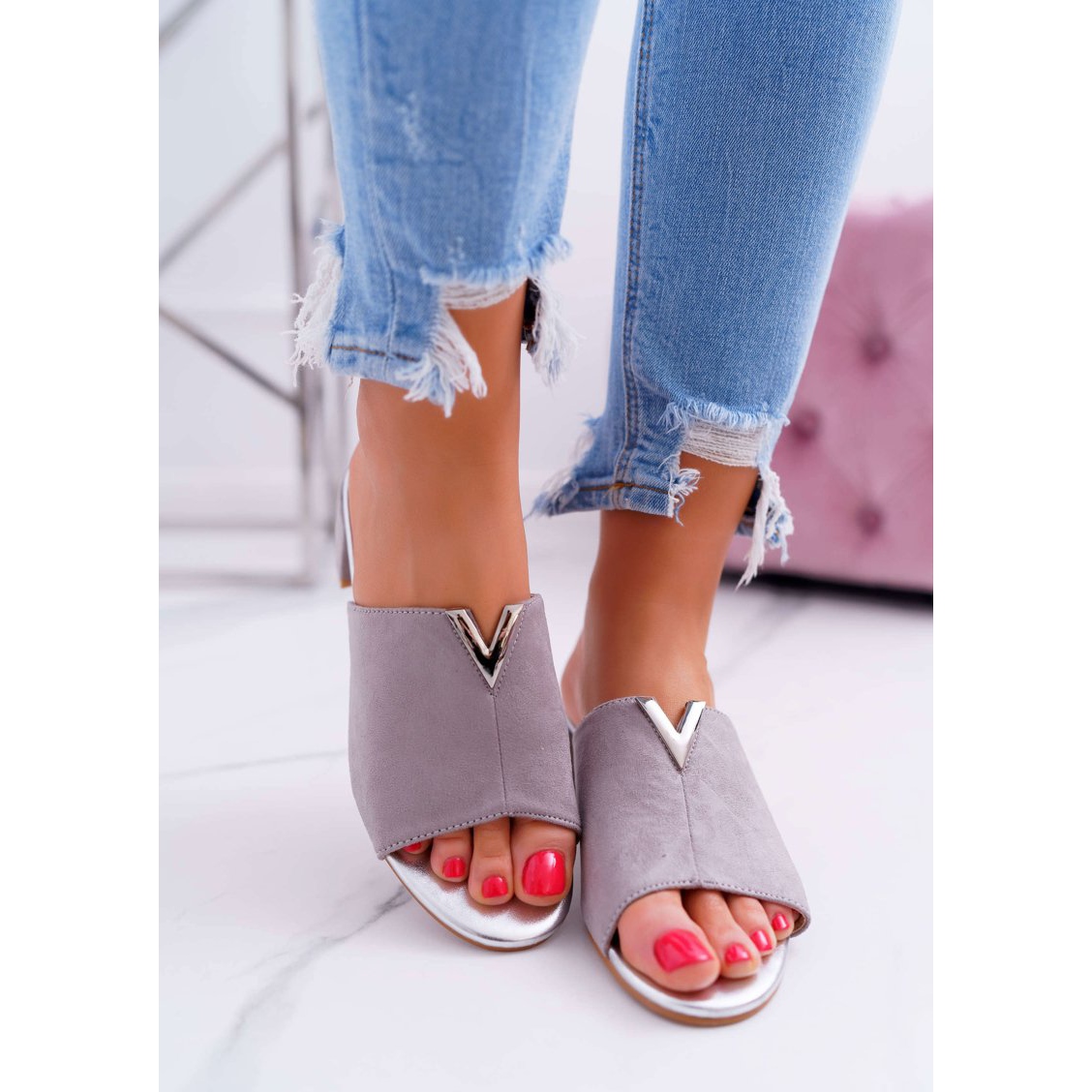 Détails: Vinceza Pantoufles Classiques Élégantes Pour Femmes On A Block Gris Demea