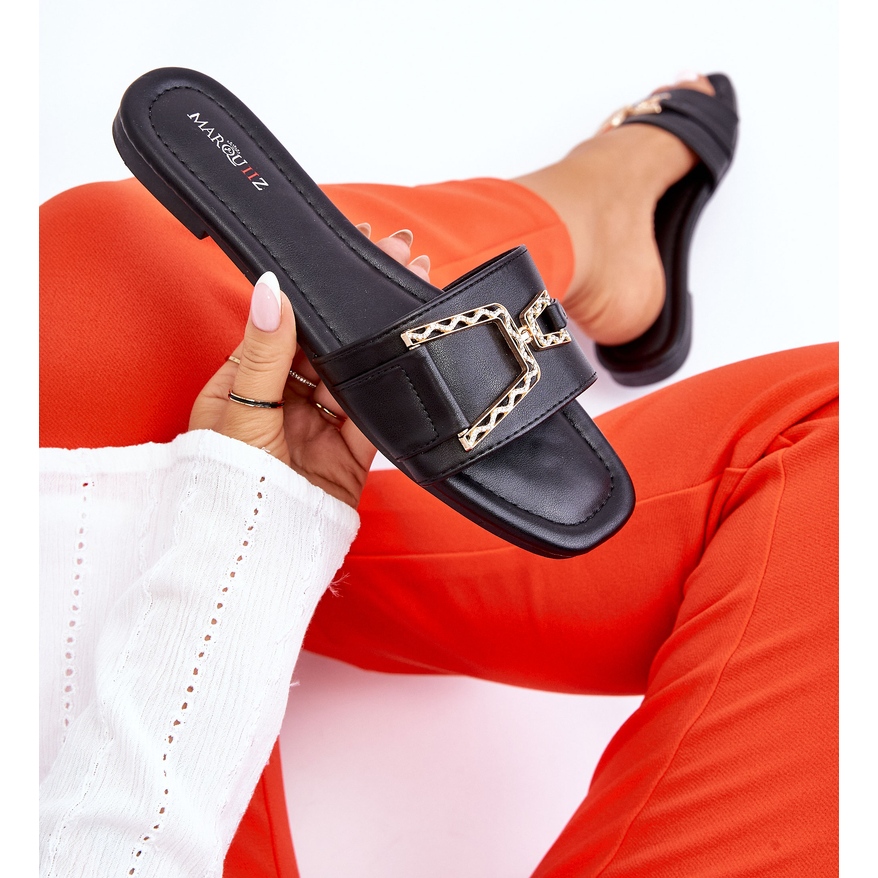 Inna marka Pantoufles classiques noires à ornements impressionnants pour femmes le noir
