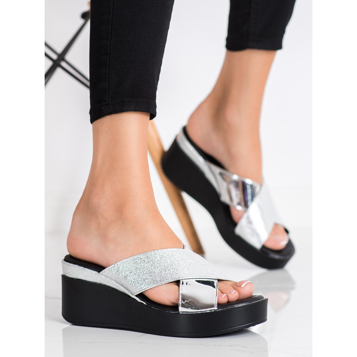 Les tongs compensées Silver Weide sont le choix parfait pour les femmes qui apprécient à la fois le confort et un look tendance au quotidien. Fabriquées en simili cuir de haute qualité, ces tongs allient élégance et style décontracté, s'adaptant parfaitement aux tendances printemps-été.