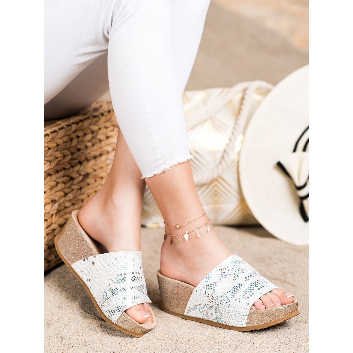 Détails: Bona Pantoufles Compensées Blanches