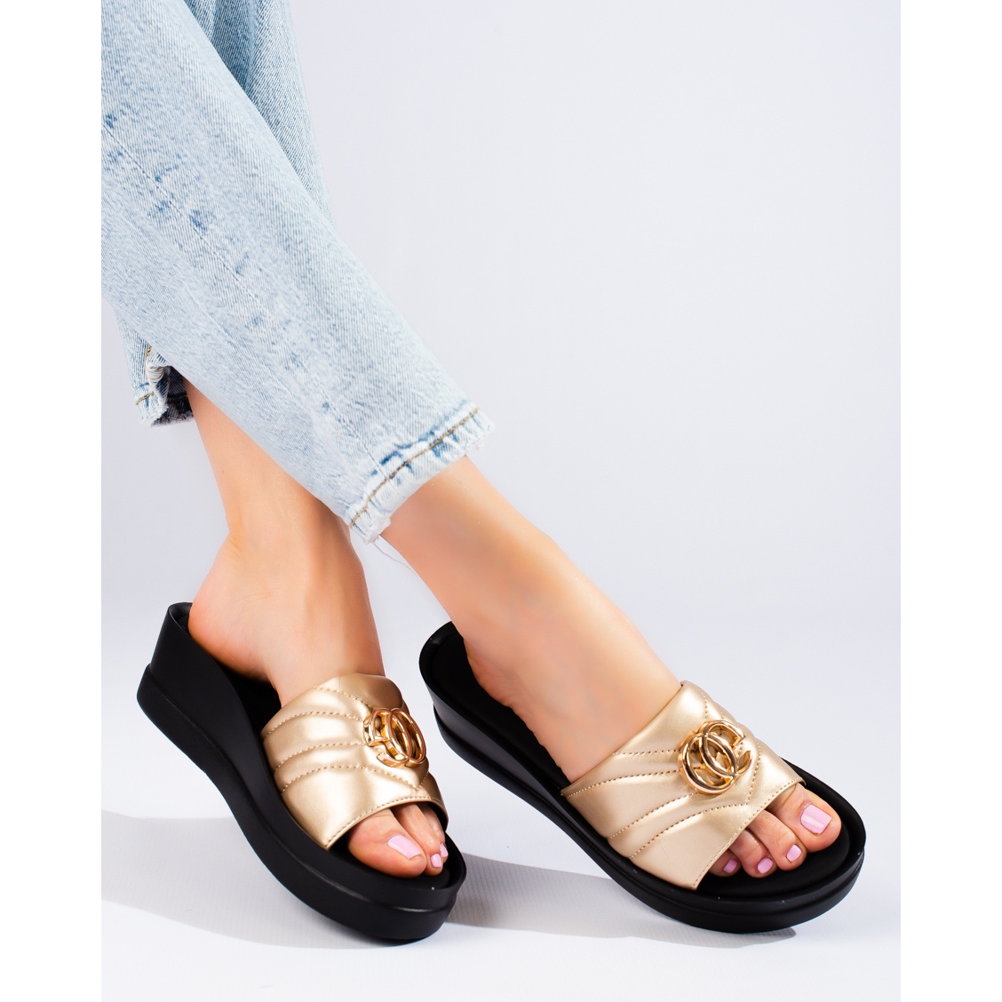 Détails: W. Potocki Pantoufles compensées dorées pour femmes de Potocki d'or