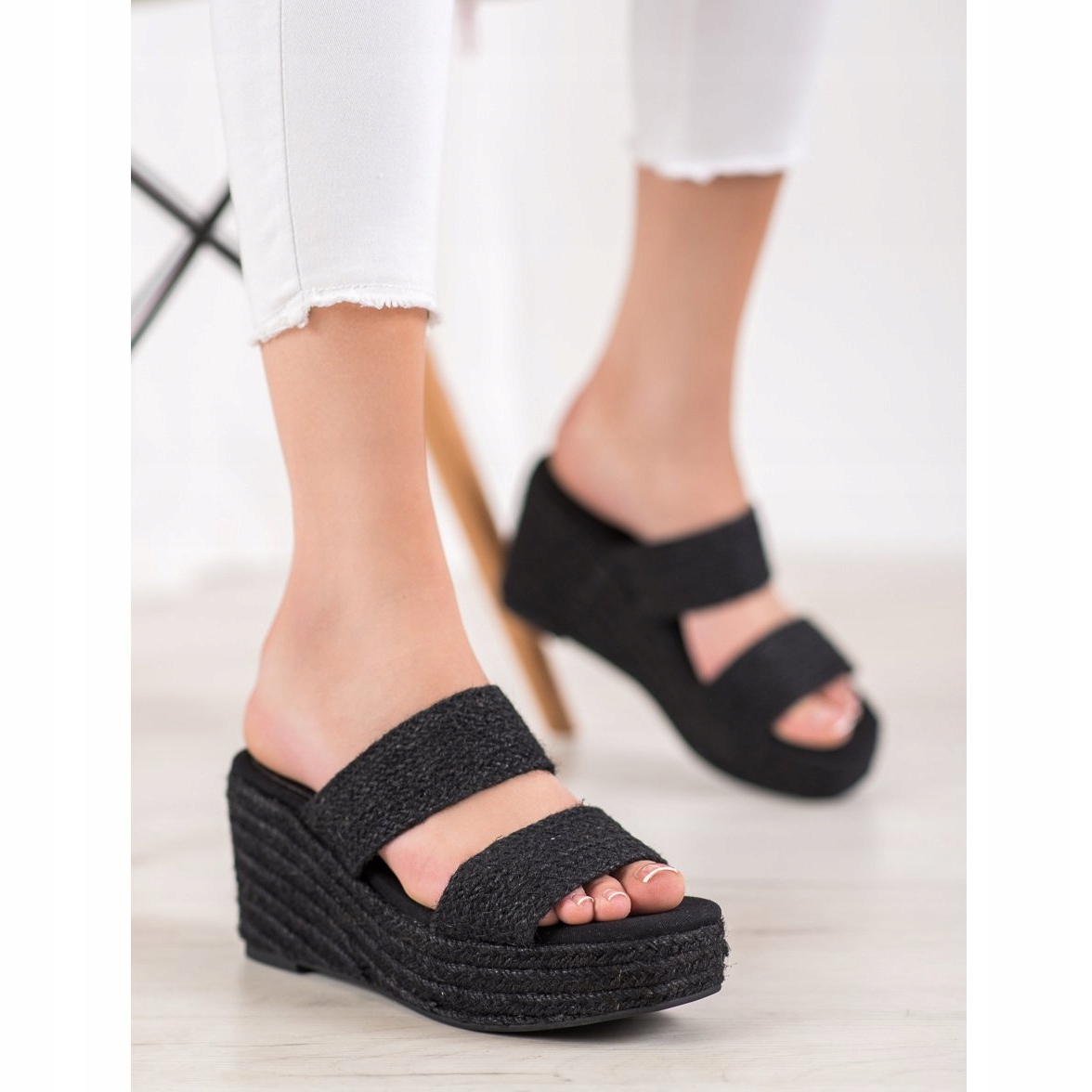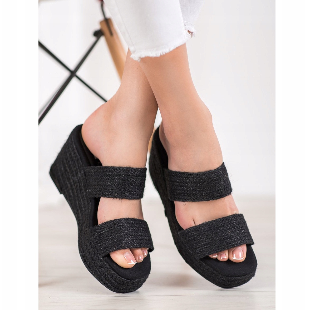 Découvrez le confort et le style avec les mules compensées légères de Kylie ! Ces tongs élégantes pour femmes de couleur noire classique sont le choix parfait pour les journées chaudes. Fabriqués dans une matière textile de haute qualité avec une texture ficelle, ils s'intègrent parfaitement dans les dernières tendances de la mode.