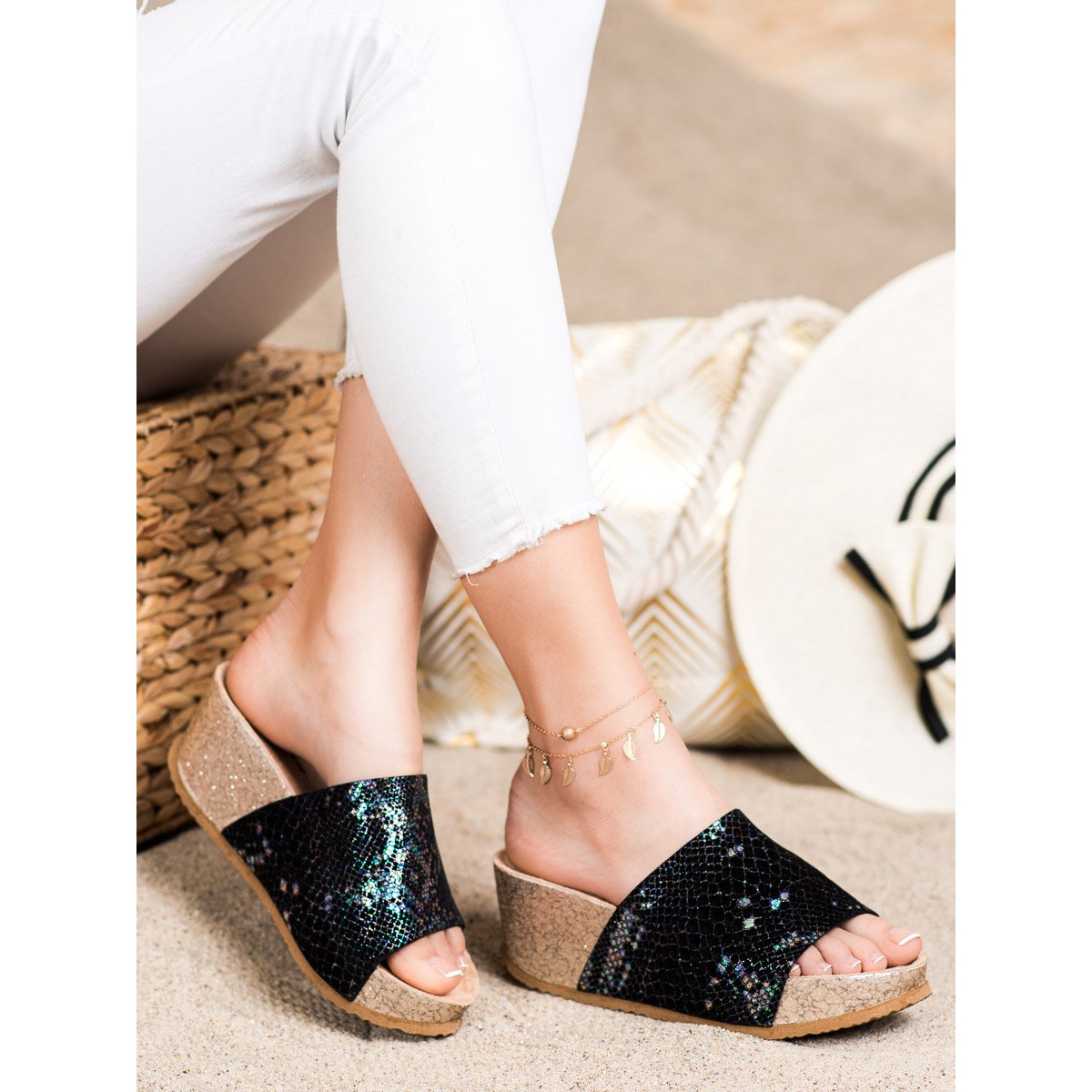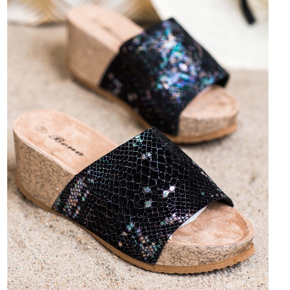 Découvrez un confort et un style inégalés avec les mules compensées Bona ! Ces tongs uniques, créées en pensant aux femmes, combinent parfaitement un design décontracté avec un accent tendance et accrocheur. Leur couleur noire et leurs paillettes subtiles les rendent parfaits pour les tendances du printemps et de l'été.