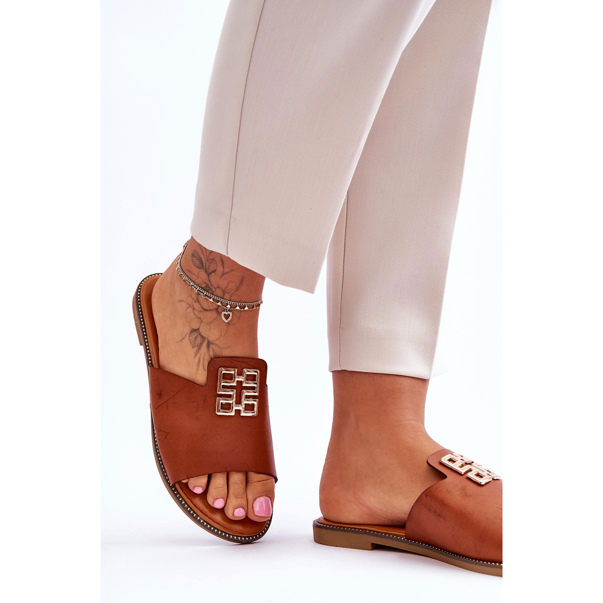 Détails: FJ1 Pantoufles confortables à la mode pour femmes avec décoration Camel Ayanna brun
