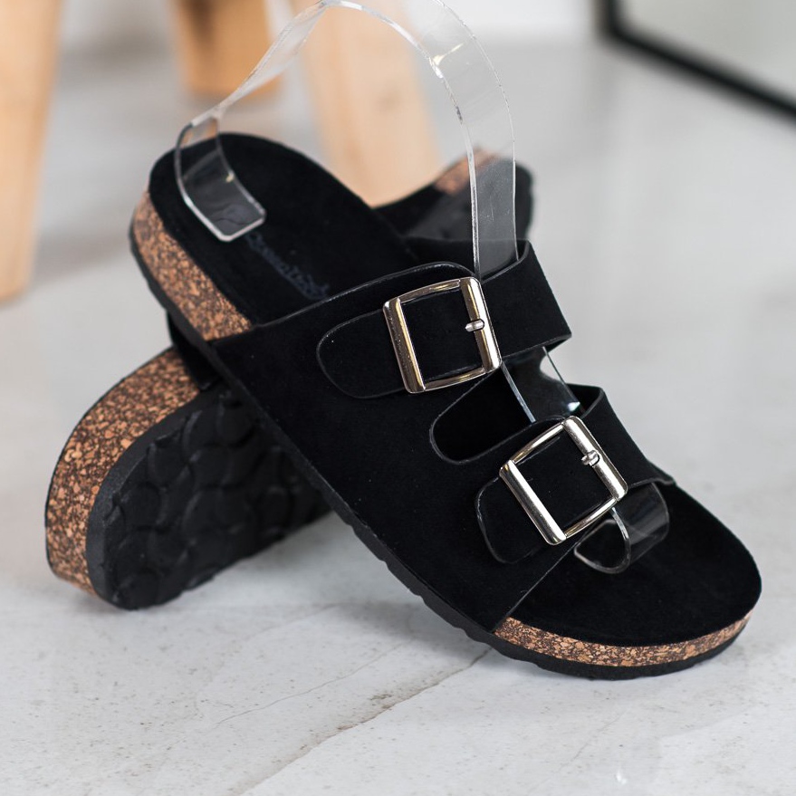 Détails: Queentina Pantoufles confortables avec boucle le noir