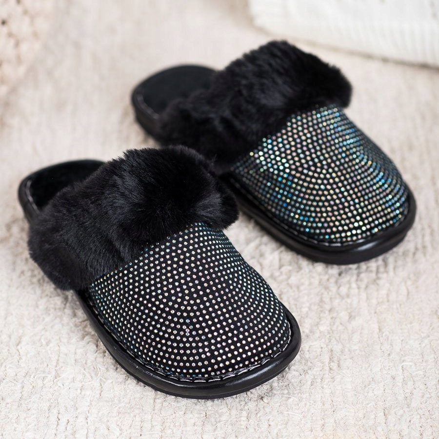Les pantoufles Bona se distinguent non seulement par leur fonctionnalité, mais aussi par leur design à la mode : le tout est décoré de zircons spectaculaires qui leur donnent un éclat subtil. L'intérieur des chaussures est rempli de fourrure noire douce, qui procure une sensation de luxe et un confort de port exceptionnel.