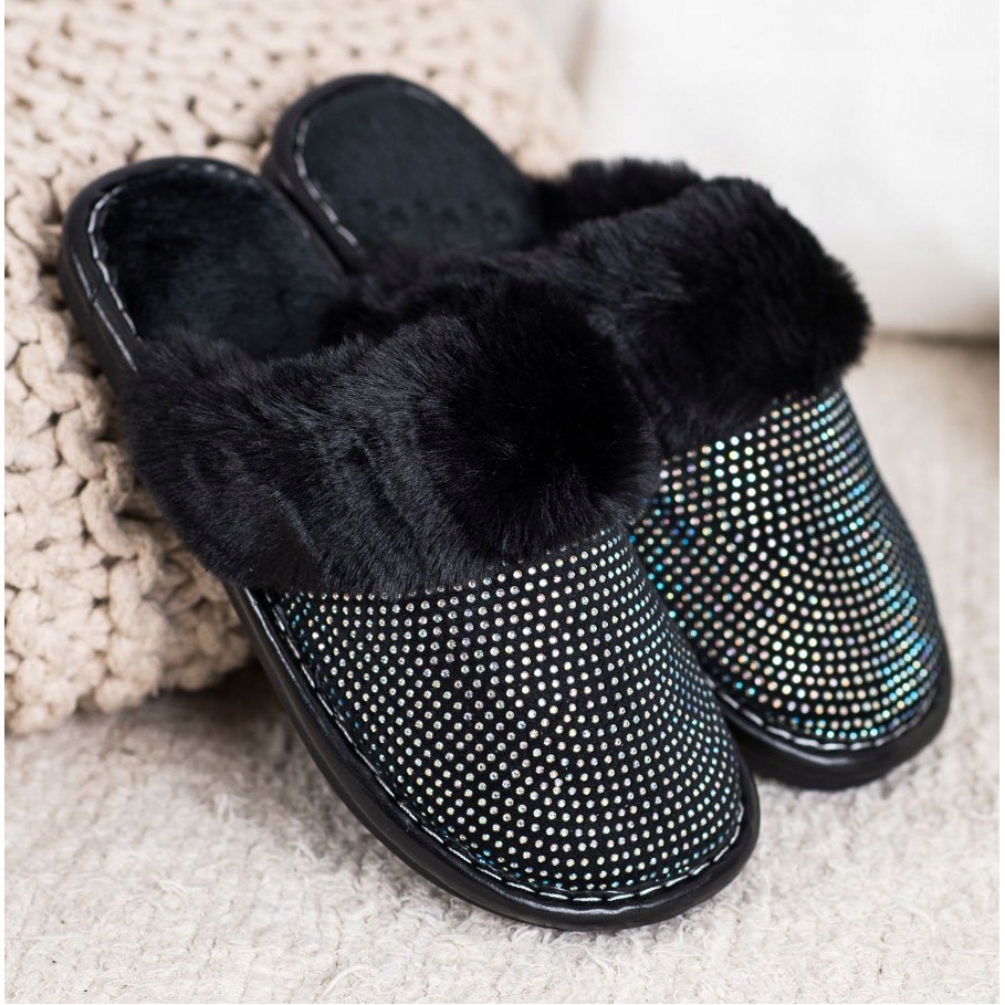 Détails: Bona Pantoufles Confortables Avec Fourrure le noir