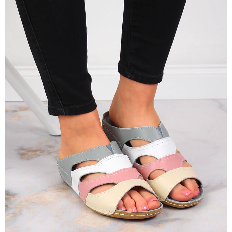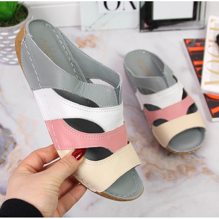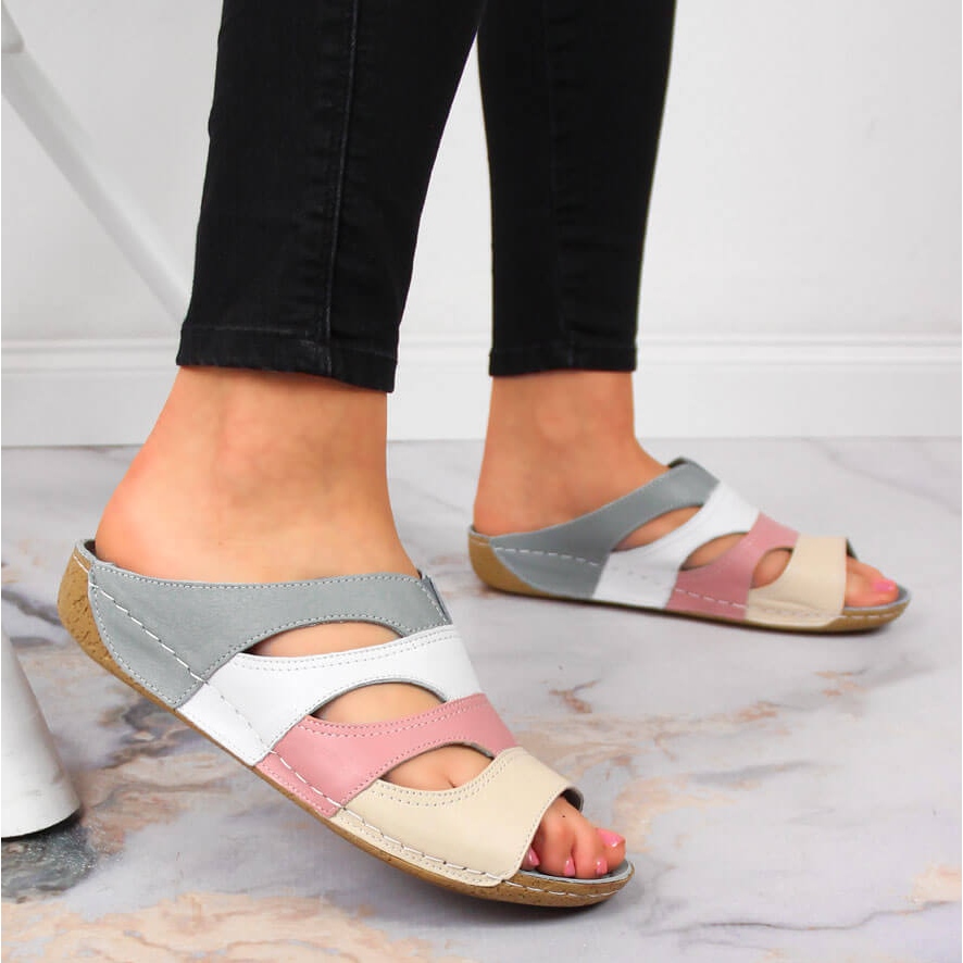 Détails: Pantoufles confortables en cuir pour femmes multicolores Artiker gris