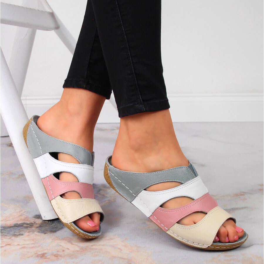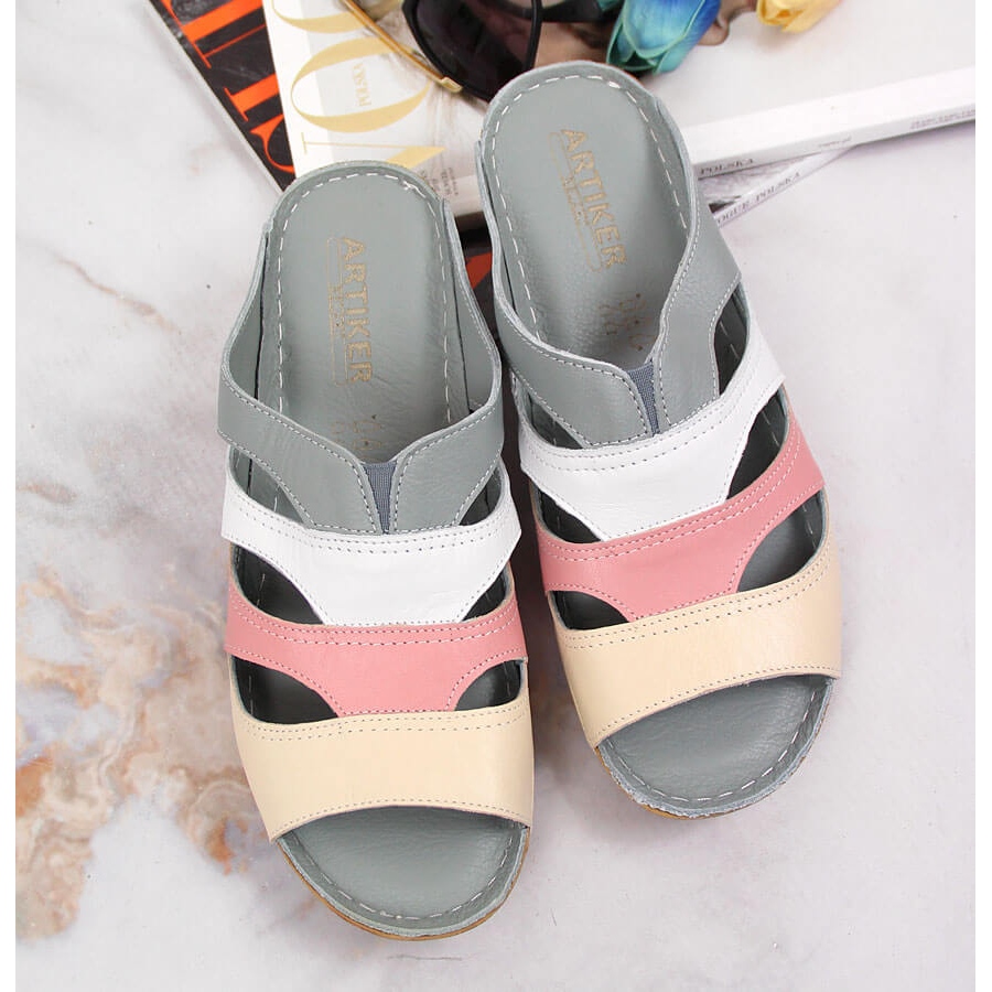 ARTIKER Pantoufles confortables en cuir pour femmes multicolores Artiker gris