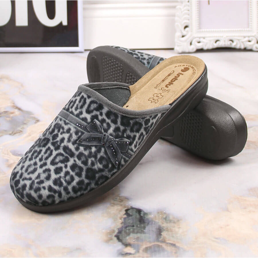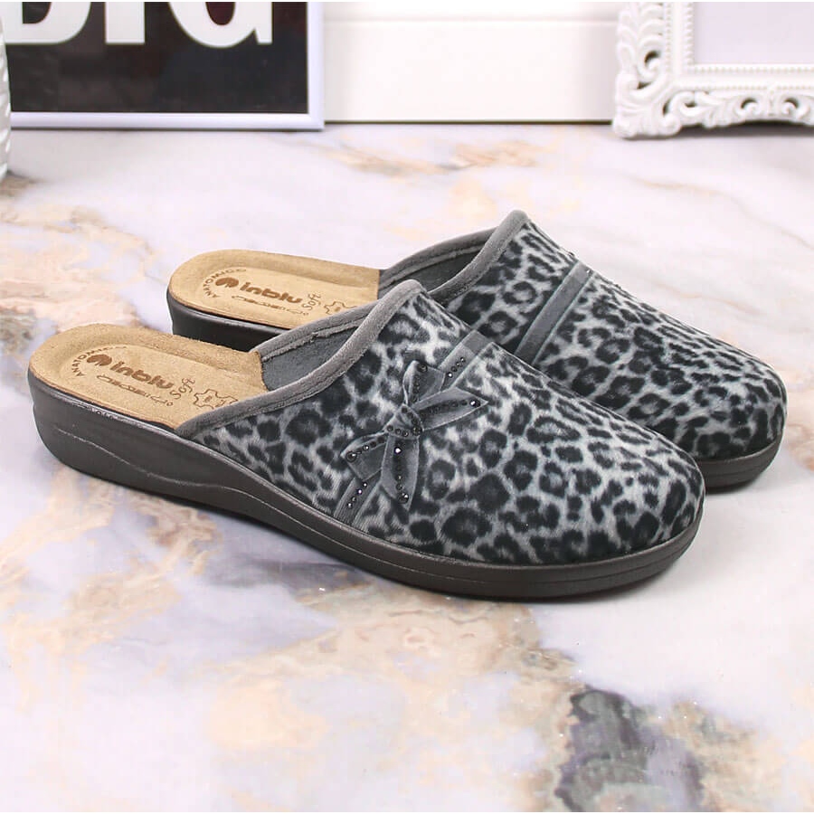 Les chaussons Inblu se distinguent par un imprimé léopard original - audacieux, mais en même temps subtil grâce à l'élégante couleur grise. C'est une proposition pour les femmes qui aiment ajouter un accent un peu sauvage à leurs styles, tout en conservant une esthétique classique.