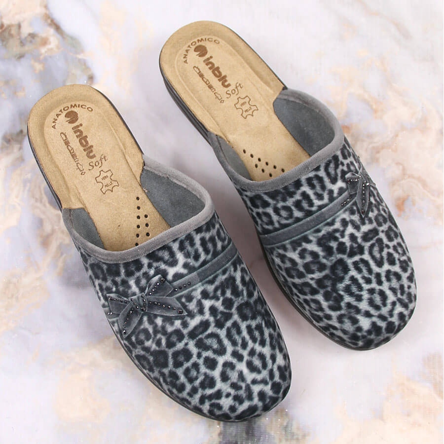 Détails: Pantoufles confortables grises pour femmes à imprimé léopard Inblu