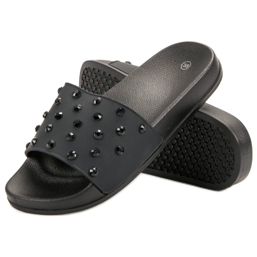 Les tongs noires sont ornées de cristaux élégants qui les rendent chic et accrocheuses. Leur design minimaliste, sans motifs supplémentaires, leur permet de s'adapter facilement à différents styles, aussi bien décontractés que sportifs. Ils seront parfaits en combinaison avec des robes d'été, des shorts ou des pantalons de survêtement.