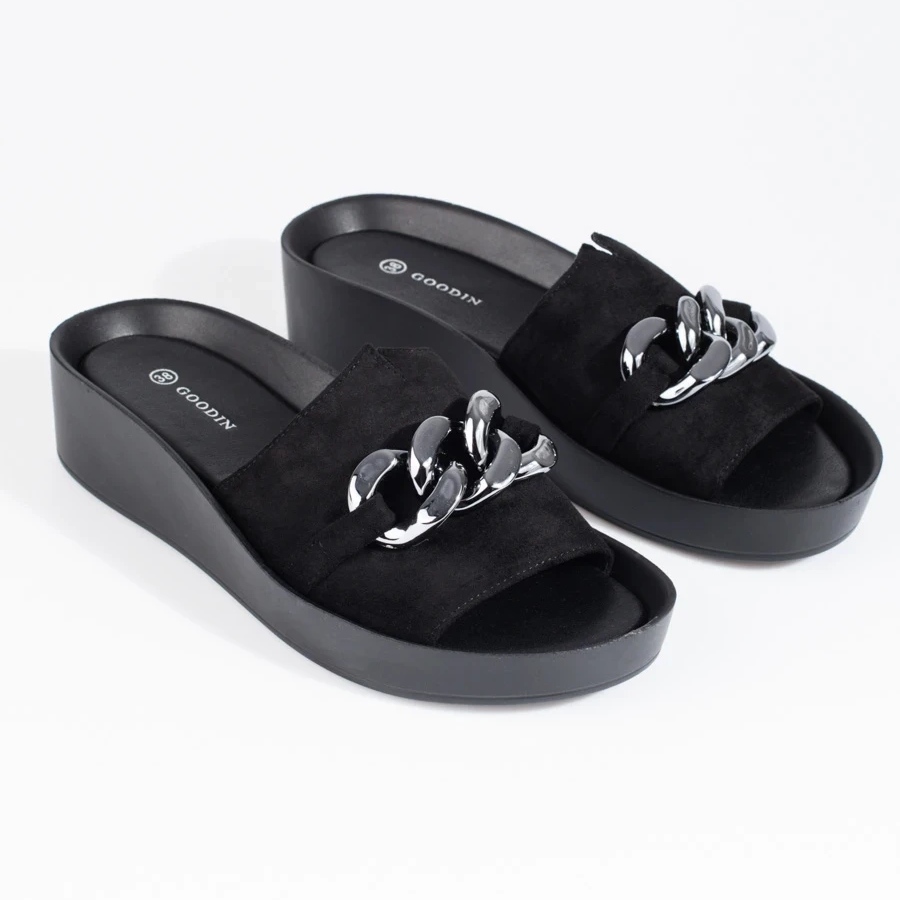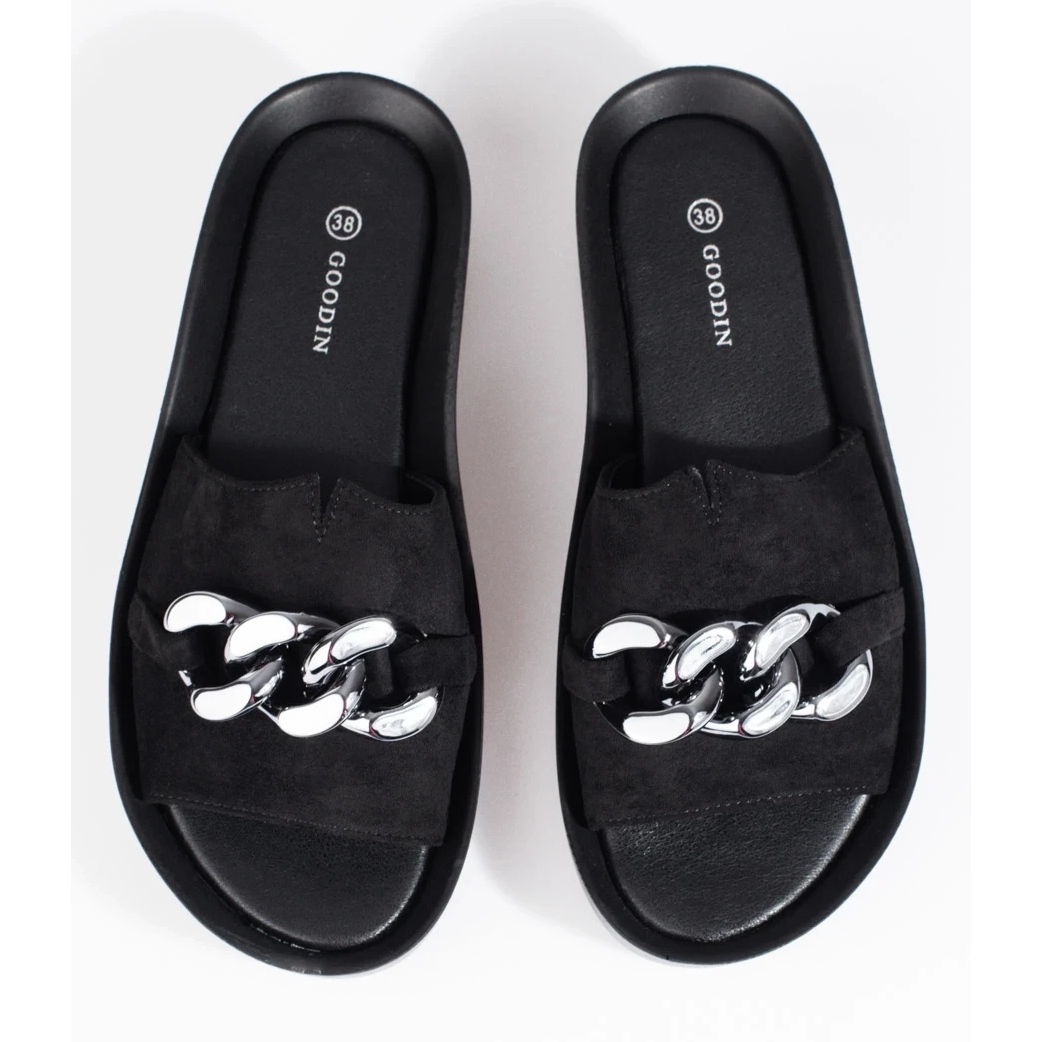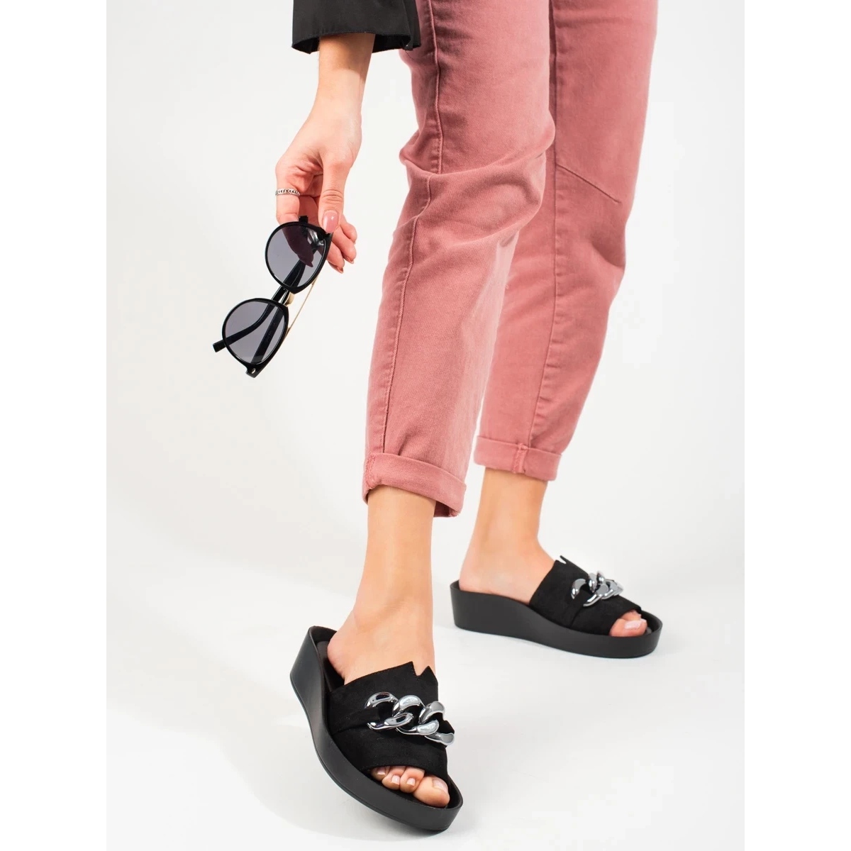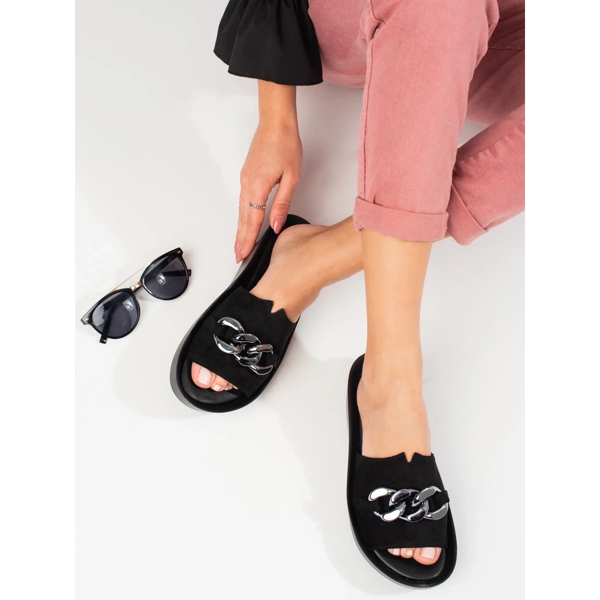 Détails: Pantoufles confortables pour femmes Shelovet noires avec une chaîne le noir