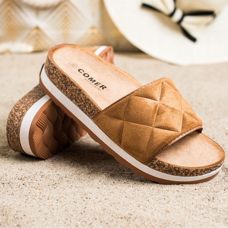 Comer Comer Pantoufles confortables sur la plate-forme brun