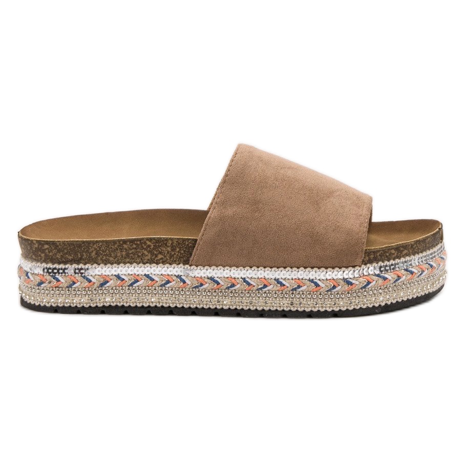 Détails: Jumex Pantoufles décorées sur la plate-forme brun