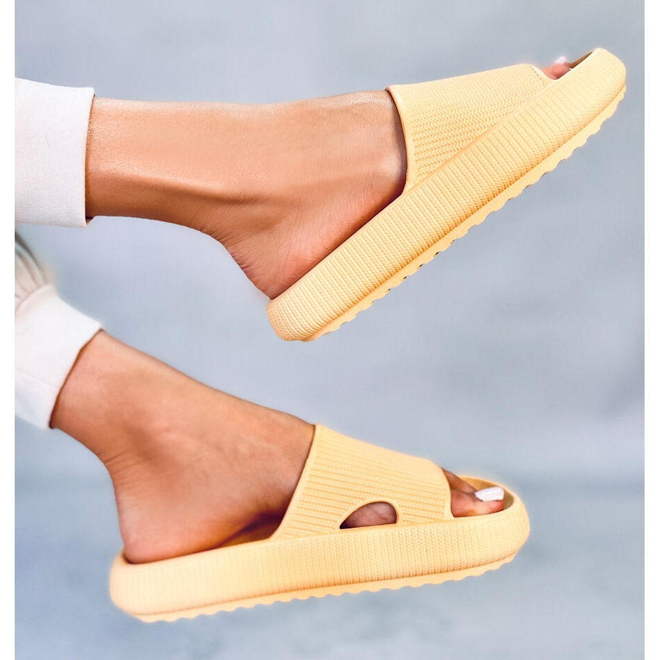 La couleur jaune design de ces tongs s'intègre parfaitement dans les dernières tendances, évoquant les chaudes journées d'été et la joie de vivre effrénée. Malgré l’absence de motif, leur teinte intense en fait un acteur majeur dans le monde de la mode casual.