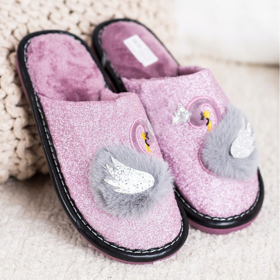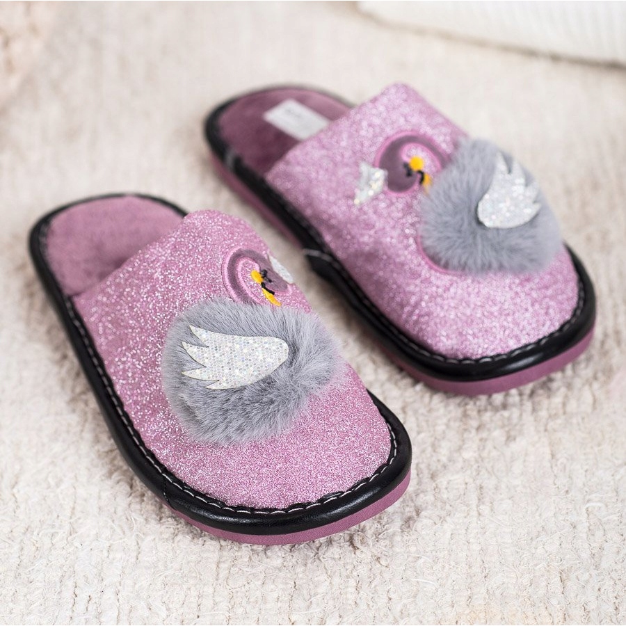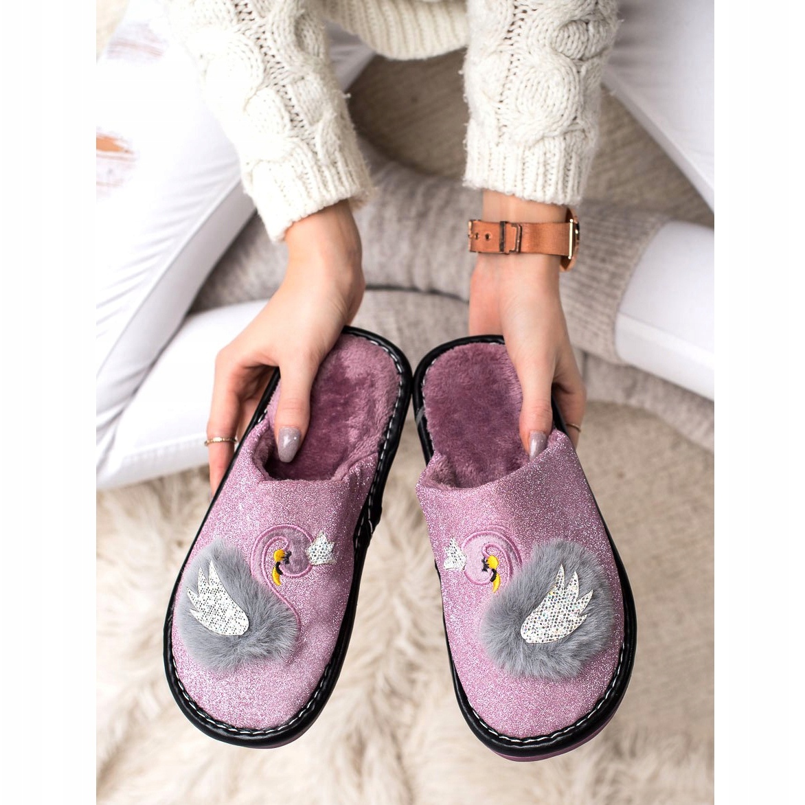 Découvrez le confort et le style au quotidien avec les pantoufles Bona. Ces charmants chaussons violets séduisent non seulement par leur couleur, mais aussi par une application originale en forme de cygne qui leur confère un caractère unique. Fabriqués en brocart, ils sont à la mode et élégants, et la fourrure douce à l'intérieur garantit un confort même les jours les plus froids.